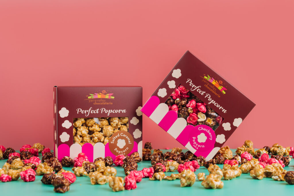 Answer the door to all those little Trick-or-Treaters while you enjoy your own box of specialty Chocolaterie Popcorn – Chocberry or Salted Caramel.