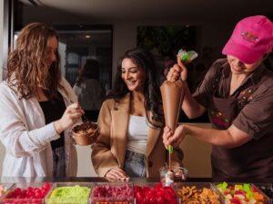 You’ll create your very own chocolate bar, choosing from a variety of delicious ingredients to blend with our smooth couverture milk, dark, or white chocolate. Finish off by designing a fun 3D chocolate masterpiece.